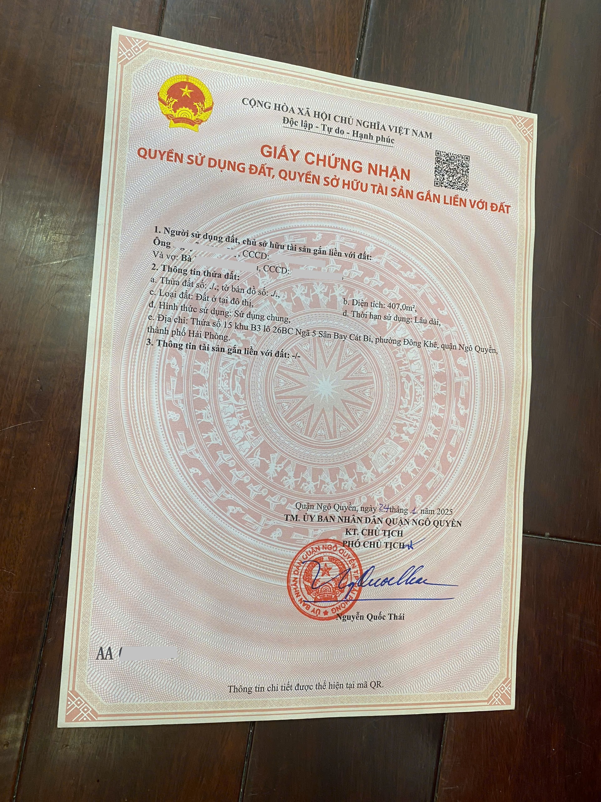 Bán lô đất 407m2 Lô 26 Lê Hồng Phong ngay gần UBND quận Ngô Quyền